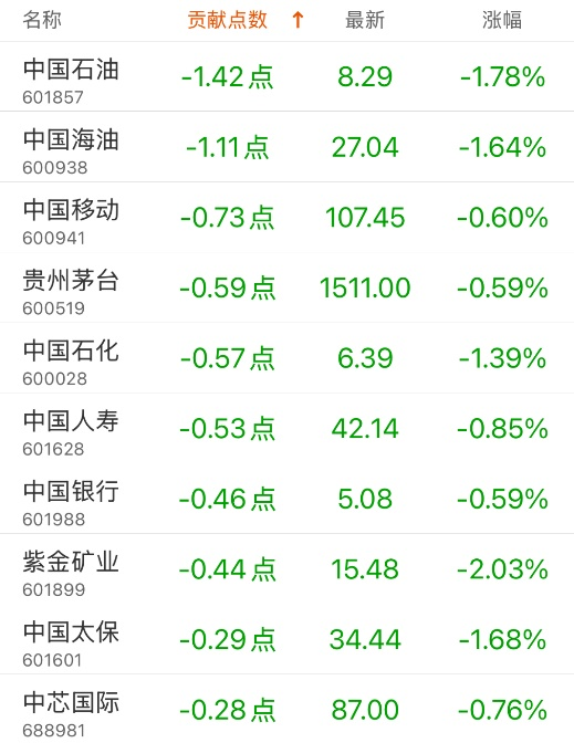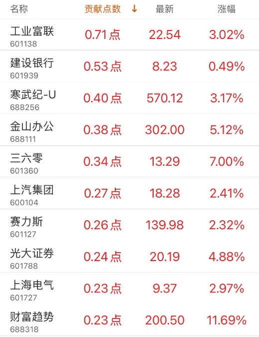 对上证指数孝顺点数最多的个股是工业富联,孝顺0.71点,该股当日涨3.02%,收盘价22.54元;攀扯点数最多的个股是中国石油,攀扯1.42点,该股当日跌1.78%,收盘价8.29元。