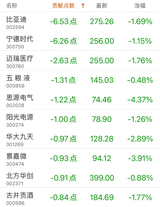 对深证成指孝顺点数最多的个股是东方资产,孝顺4.29点,该股当日涨2.04%,收盘价27.48元;攀扯点数最多的个股是比亚迪,攀扯6.53点,该股当日跌1.69%,收盘价275.26元。