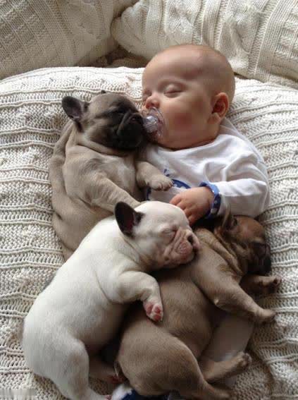 这个画面是不是看起来相配有爱呢,一群狗狗随同小主东说念主。