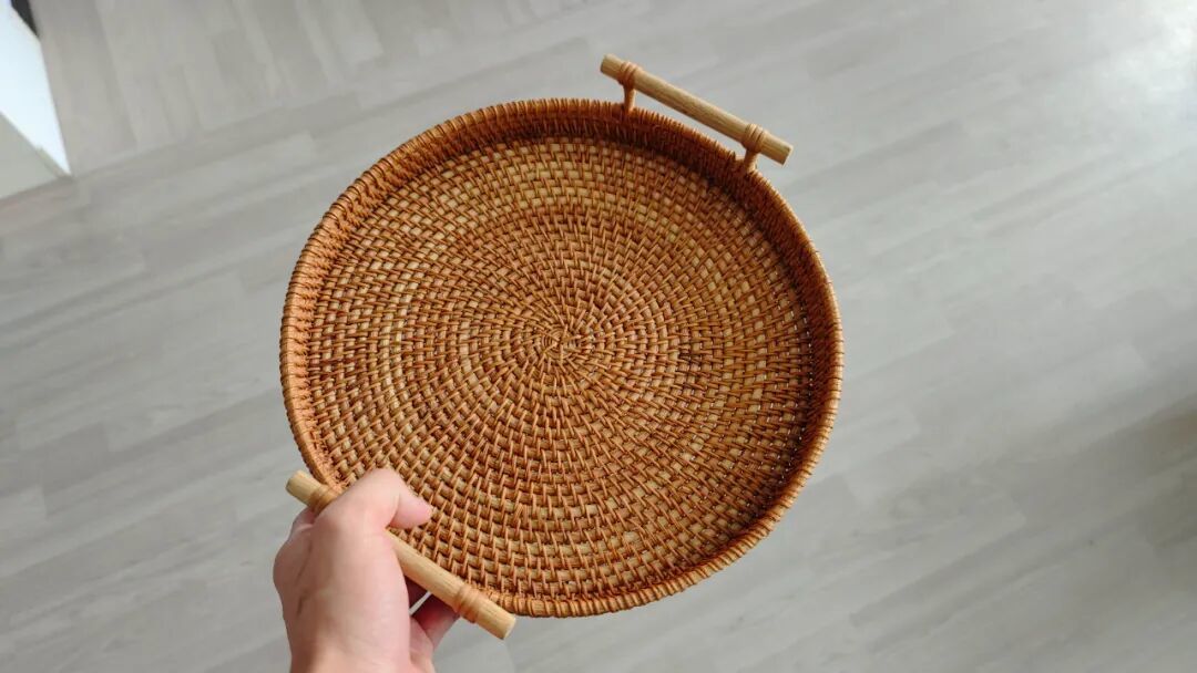 👉问题:网上看别东谈主晒的藤编的餐垫、收纳筐,很有“当然气味”,让家充满魄力感。可使用后发现——藤编餐垫藏满食品碎渣,用净水冲不掉,用刷子刷又会损坏藤条;草编收纳筐,洗水后也容易湿气发霉。