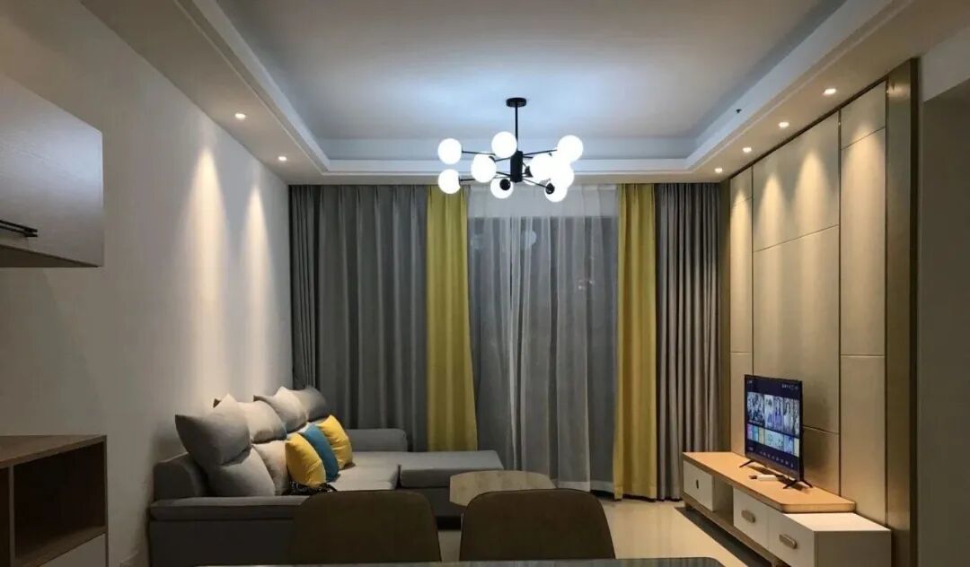 ✅忠告:当下贱行的双眼皮吊顶、大平顶等浅近造型,是减少家务的吊顶首选。灯光可接管镶嵌式的筒灯、射灯或灯带。
