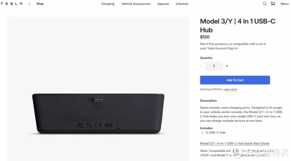 近日,特斯拉在加拿大官方商店厚爱上架了一款原厂中控台4合1USB-C膨胀坞开云app官网入口网址,精确补王人了焕新版Model 3、Model Y车型中控充电接口不及的用车痛点,现在该居品售价120加元,约合东谈主民币607元。