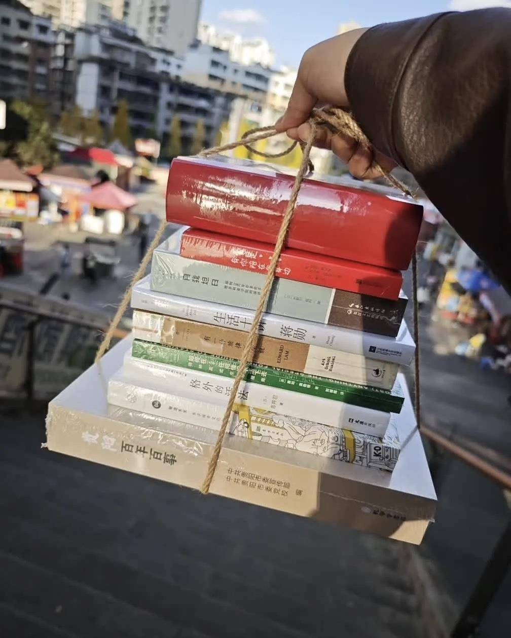 杨不正先容,这9本书是他全心挑选的,有新郎心爱的,也有新娘心爱的。他将9本书用绳捆成一摞,最上头是一册大红色包装的书,书名《谜底之书.爱情篇》,随后是《爱是有你陪在我身边》《自我率直》《糊口十讲》《有一种旋律叫梁祝》《如安在职何情况下活下去》《特殊的活法》《制造东京》,最底下放的是一册厚厚的《贵阳百年百事》。